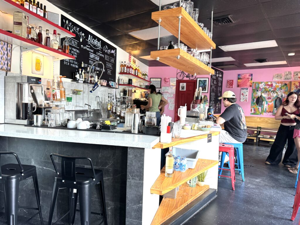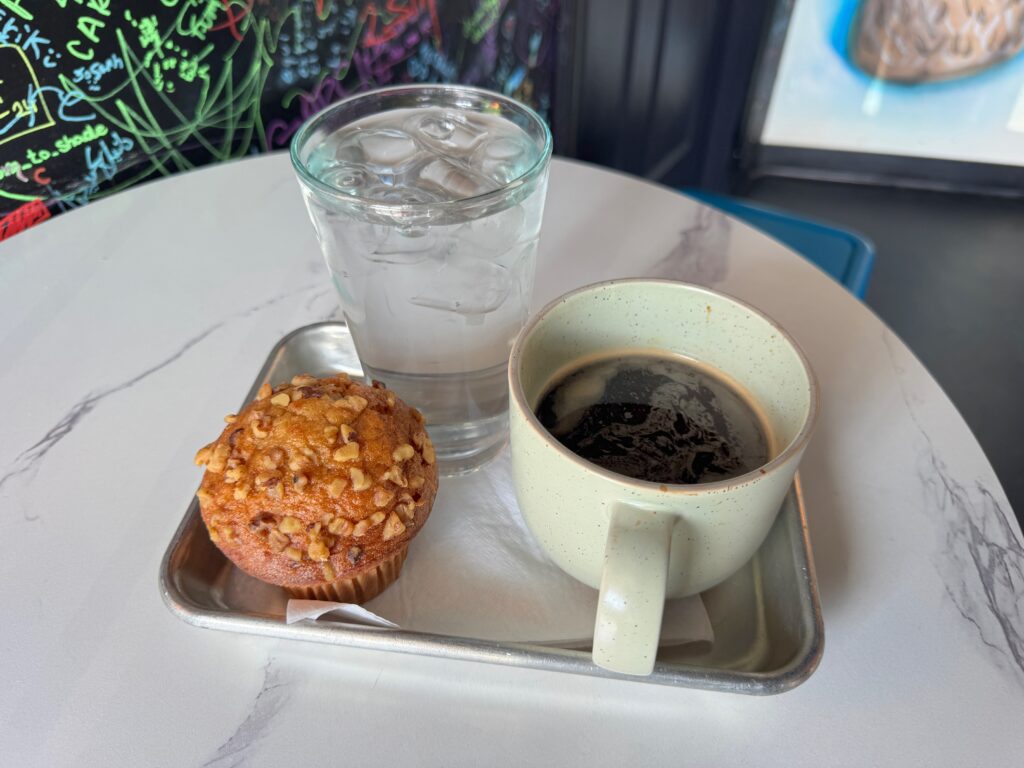 This local coffee shop has an artsy eclectic feel and has friendly helpful staff. The place was clean, although there was no wheelchair accessible seating. The eats tasted like a run to Costco’s bakery, ok, but nothing special. However the happy hour they offer of beer and wine might be special and you should check it out.