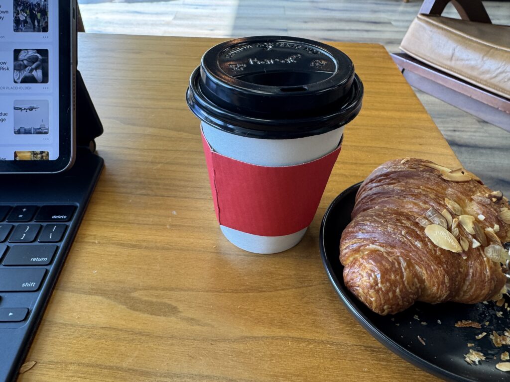 We have visited this place twice now, and sadly, both times we were disappointed with the cleanliness. It’s a comfortable place and the staff is nice, it’s relaxing as a 3rd space. The coffee is ok, but the eats need some attention. Be careful, if you get an almond croissant, unlike most places that serve a croissant with thin sliced almonds on top and a sweet filling in middle, this place seems to cut cost by selling you a croissant with some sliced almonds and nothing more but charges the same as other shops.